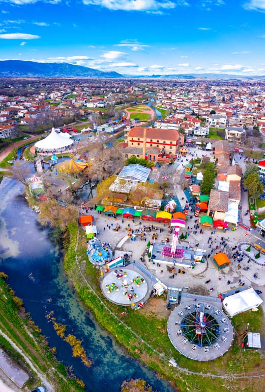 Σεργιανίστε πλάι στα νερά του ποταμού Ληθαίου που διασχίζει την πόλη. Ρομαντικό και απόλυτα χαλαρωτικό το σκηνικό, με την κεντρική πεζογέφυρα και τον μικρό καταρράκτη απέναντί της να προσφέρονται για πολλά φωτογραφικά κλικ. Δύσκολα θα ξεκολλήσετε από τον πεζόδρομο της Ασκληπιού, όπου όλοι μαζεύονται για καφέ και χάζι στην περαντζάδα, πρέπει όμως να κάνετε και μια βόλτα στο Φρούριο, όπου βρίσκεται το ύψους 33 μέτρων ρολόι της πόλης, για να χαζέψετε το πανοραμικό θέαμα. Στους πρόποδες του Φρουρίου απλώνεται το Βαρούσι, η παλιά συνοικία με τα διάσημα –από το άσμα του Βασίλη Τσιτσάνη– «στενά του Σακαφλιά».